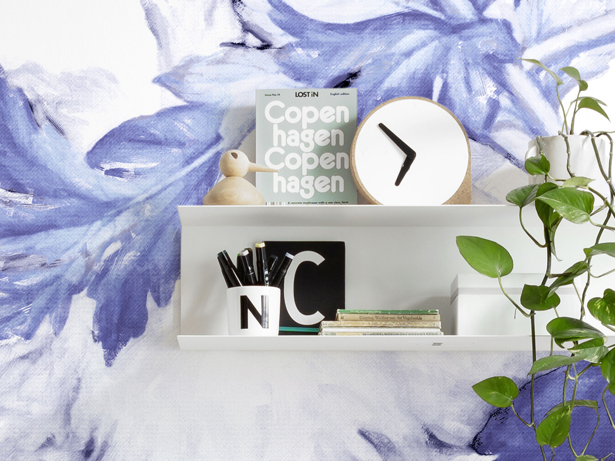 Die blauen Blüten in Aquarelloptik bringt die Wände zum Blühen. Der dezente Hintergrund in weiß bringt die Blütenpracht besonders zum Ausdruck und sorgt für eine aufregende und kreative Wandgestaltung.