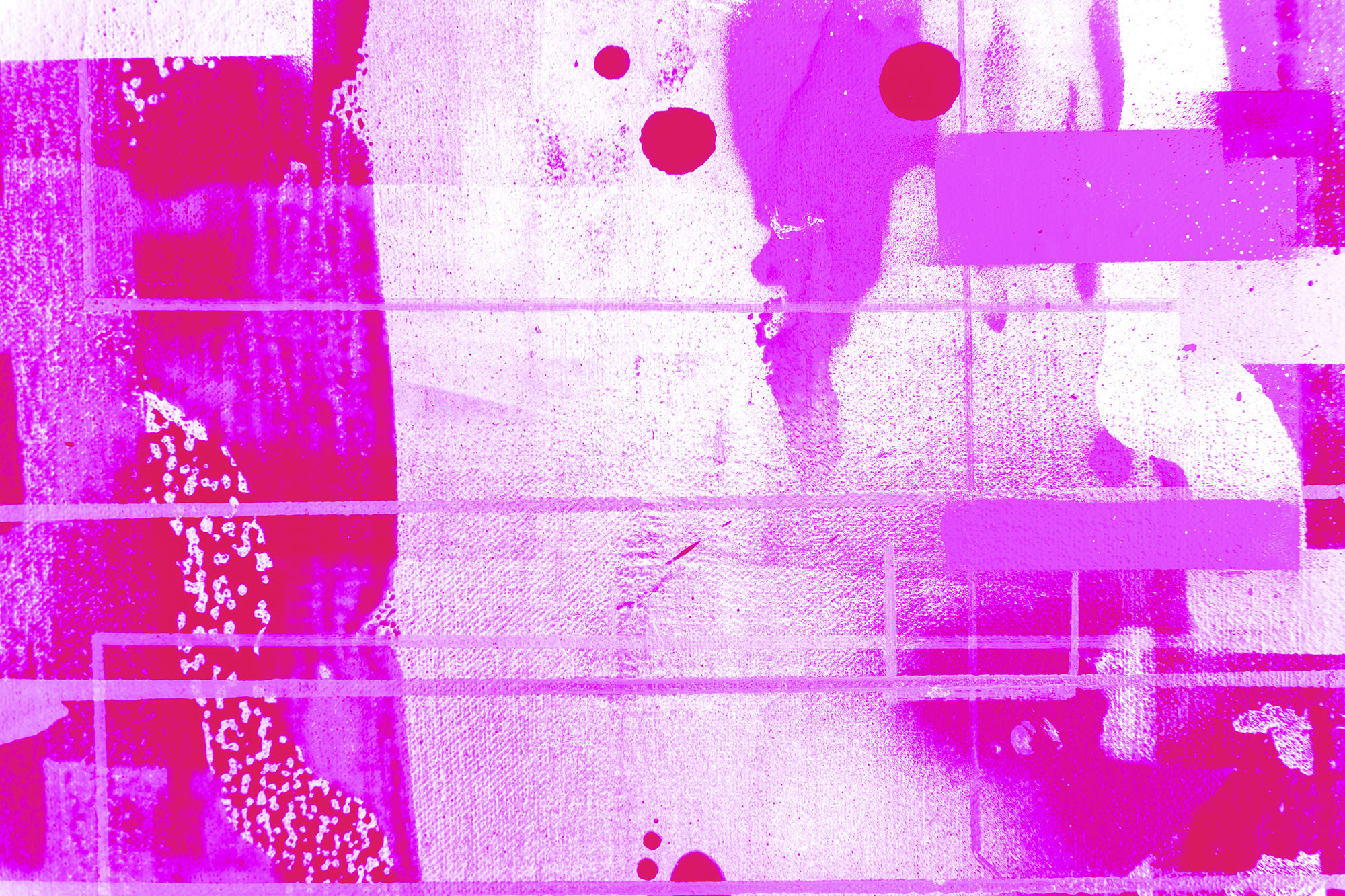 Drops Lapping: Blasenartige Schattenrisse regnen durch das opulente Koordinatensystem architektonischer Strukturen in pink, rot.