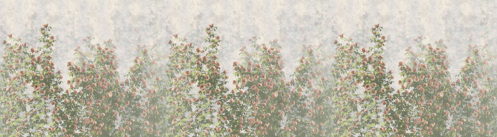 Da geht jedem das Herz auf! Die romantische Blumentapete mit dem malerischen Motiv der pastellrosa Heckenrosen, bringt den trendigen Vintagecharme mit nach Hause. Die Blumen klettern die Wand nach oben bis zum hellblauen Himmel, der sich wie ein Aquarellgemälde an die restliche Mauer schmiegt.